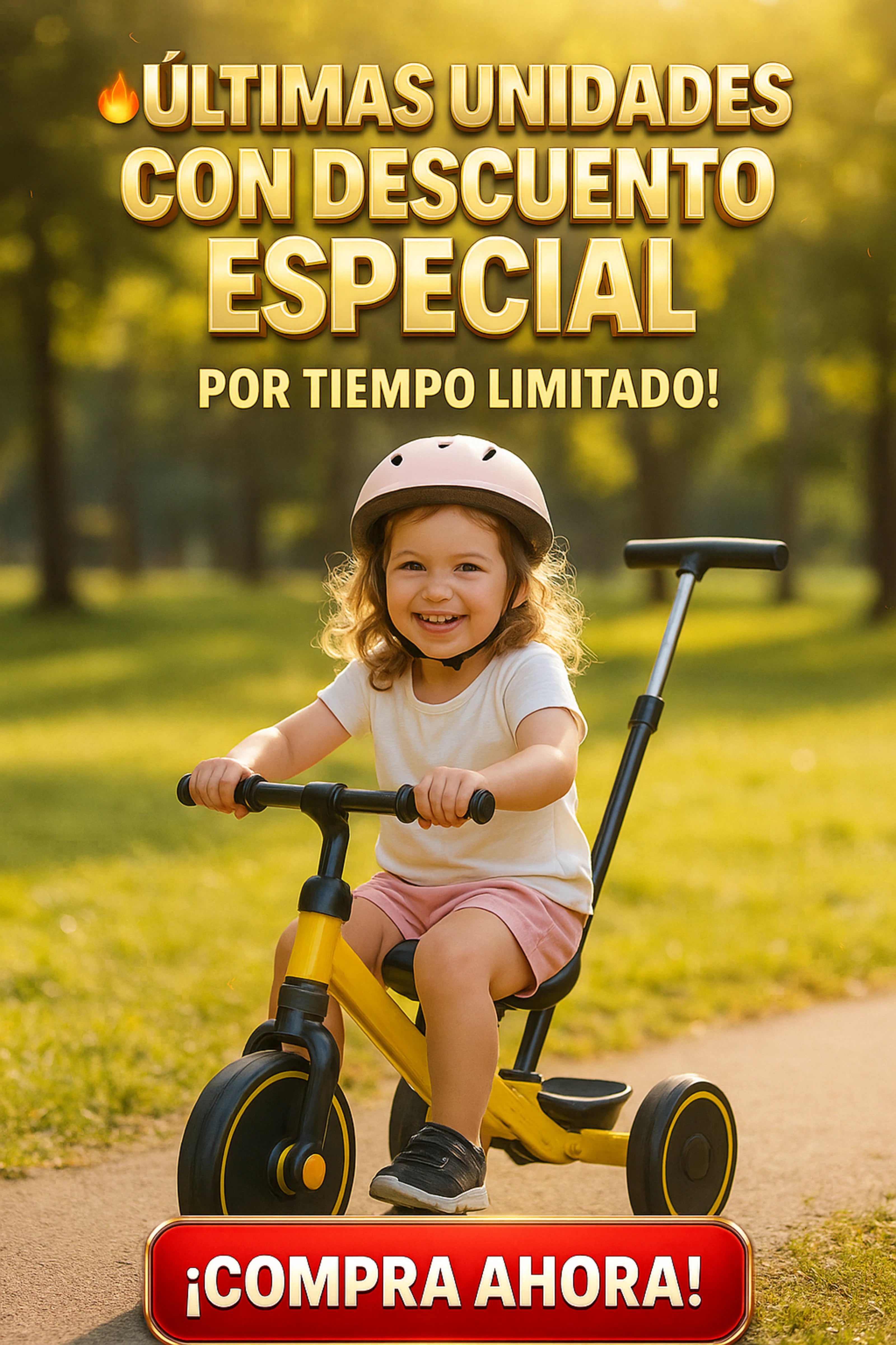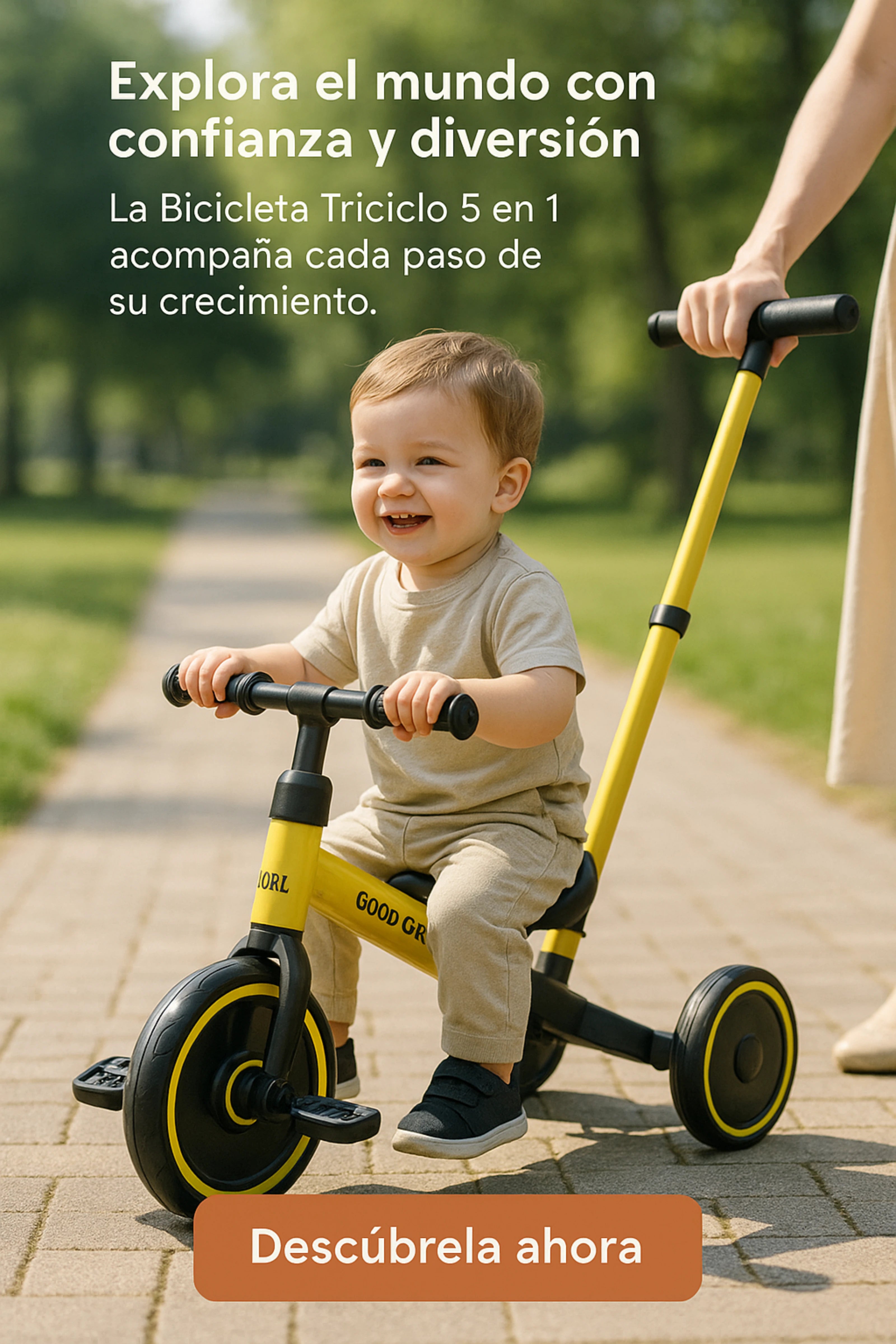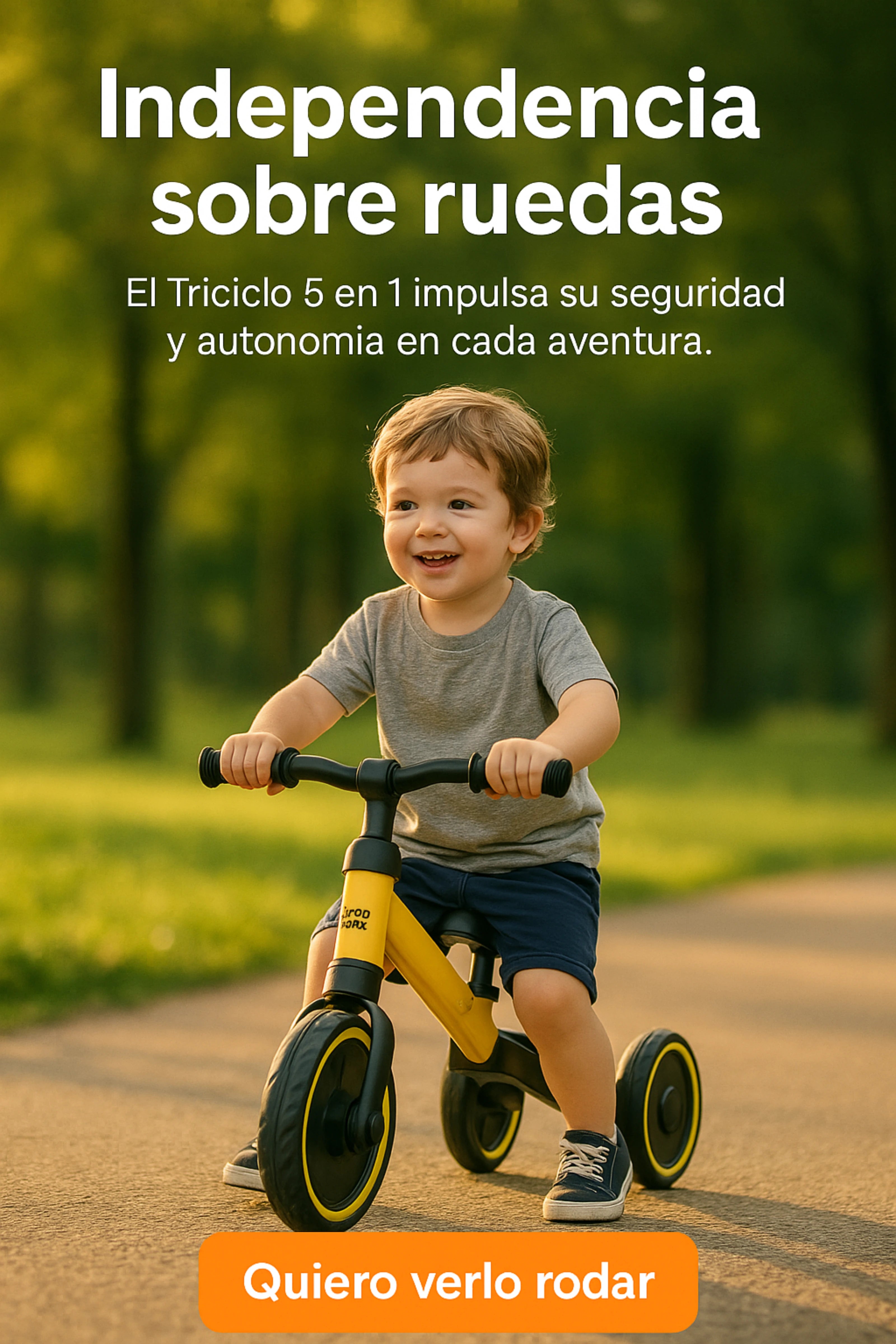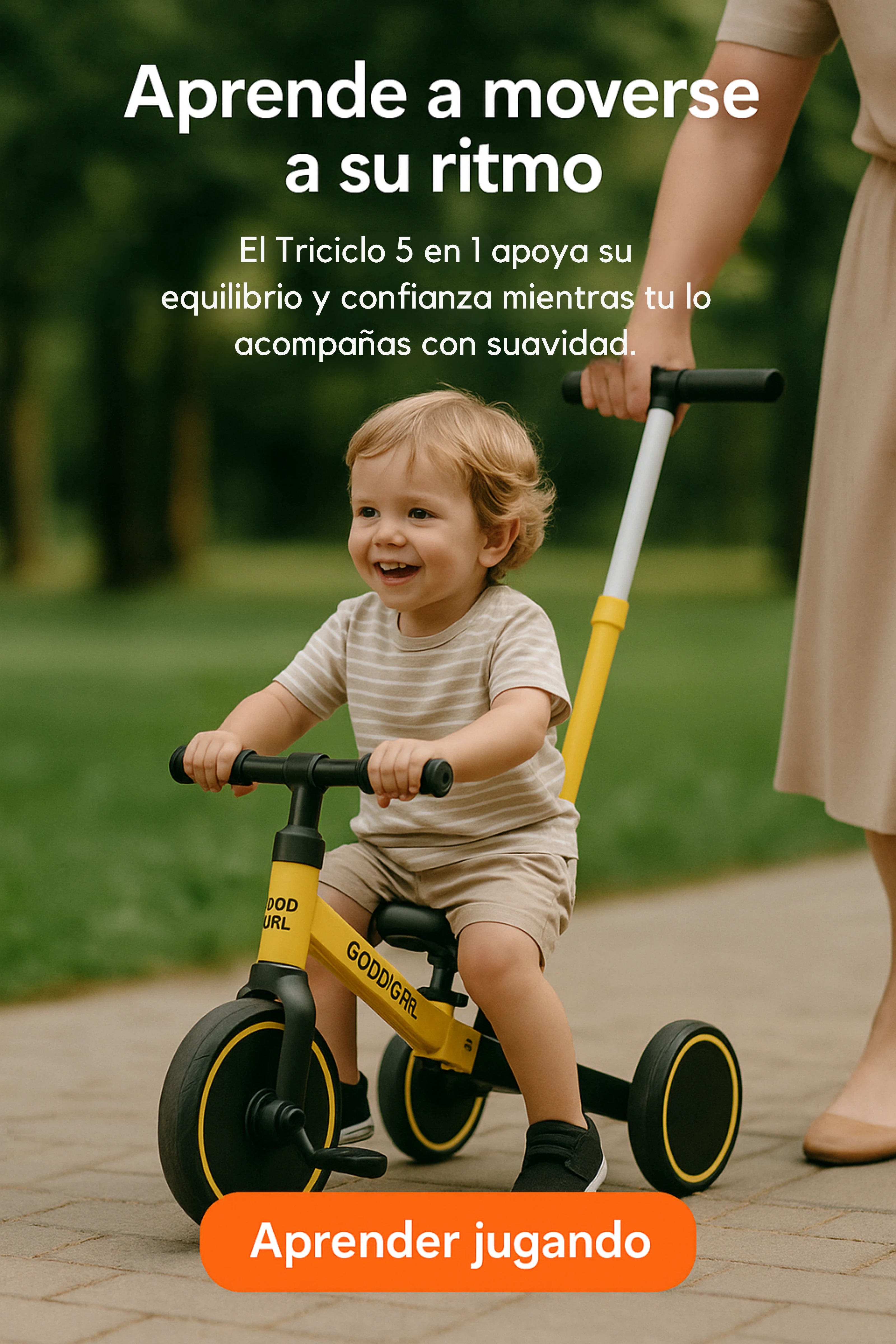 Cada día es una nueva aventura sobre ruedas. Con el triciclo 5 en 1 acompaña sus primeros pasos, sus risas y sus logros, mientras desarrollan equilibrio, coordinación y confianza.