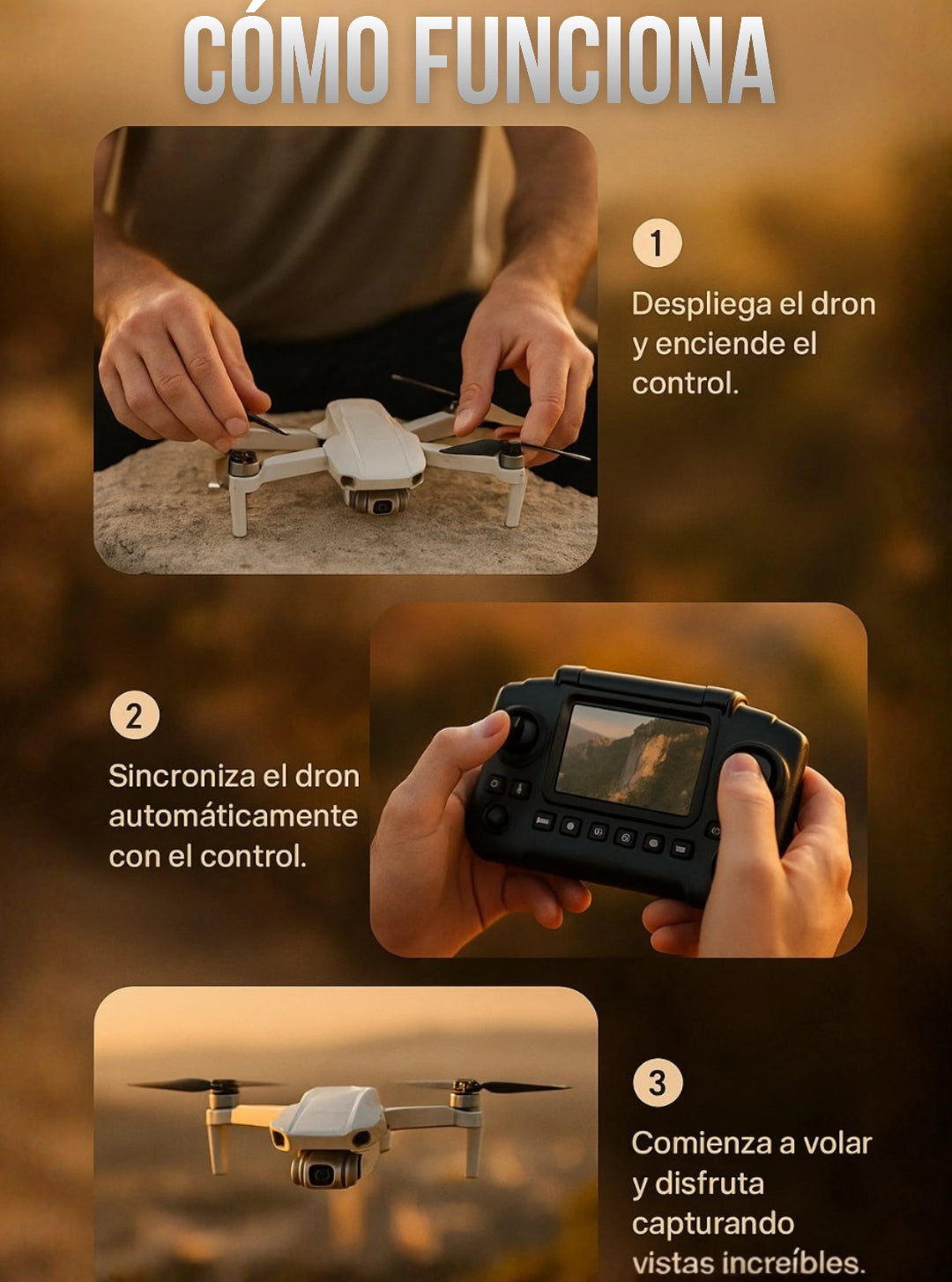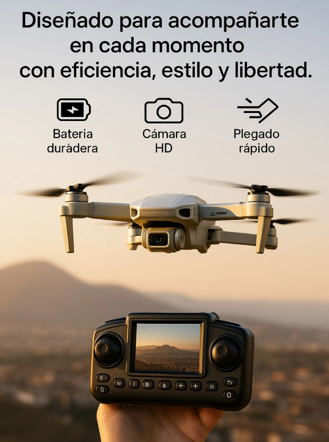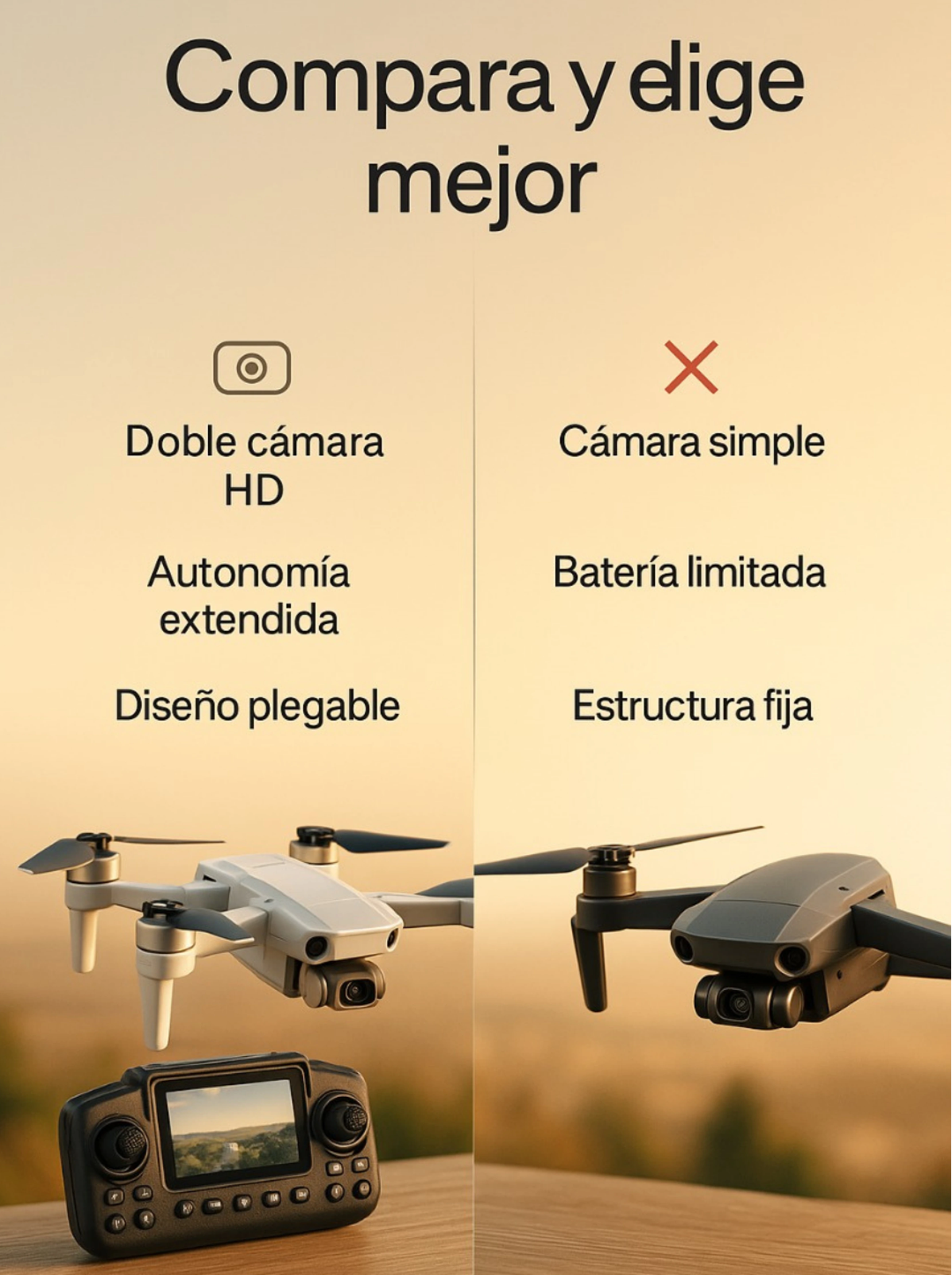 Sí ✅. El Drone 4K Dual Cam Pro llega completamente ensamblado, solo debes desplegar sus brazos, conectar la batería y sincronizarlo con tu control o smartphone.